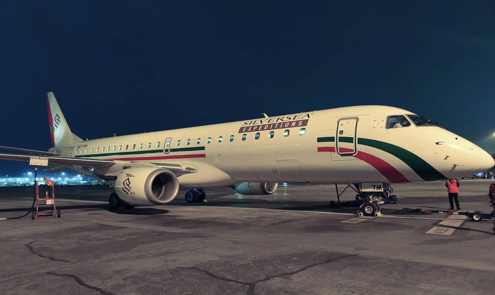 L’aereo ha uno sticker in emtrmbi lati che promuove Silversea Expeditions. Si tratta di crociere di alto profilo come spesa , oltre a scoprire la Patagonia e la parte finale del continente sud americano, ci sono anche possibilità di arrivare in Antartide. l’aereo opera da Santiago a Puerto Williams o Punta Arenas per trasportare gli ospiti che hanno comprato un pacchetto.
