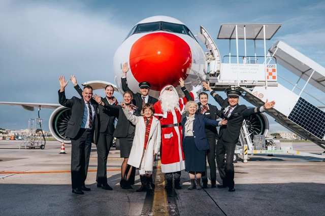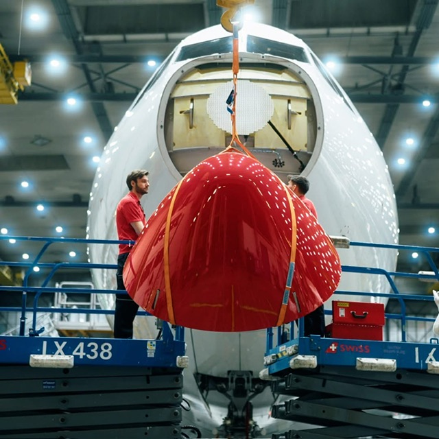 Ha scelto per l’occasione l’A320neo HB-JDH che veste una livrea natalizia celebrativa con il classico naso rosso. La cosa avvviene con la sostituzione del cono dielettrico del radar meteo da uno bianco a uno totalmente rosso che si unisce agli stessi toni utiluzzati nella livrea svizzera tra titoli e loghi.