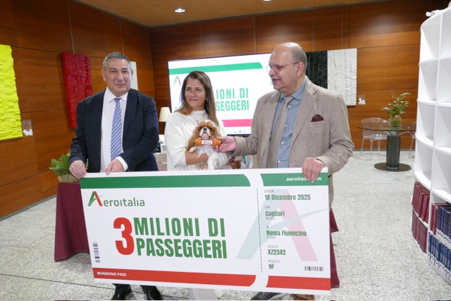 Aeroitalia ha celebrato un traguardo importante: tre milioni di biglietti acquistati dai suoi passeggeri nel 2025. Per l’occasione, presso l’Aeroporto di Cagliari, si è svolta una cerimonia speciale dedicata alla tremilionesima cliente, in procinto di viaggiare da Cagliari a Roma con il suo animale domestico comodamente in cabina (pet cabin).