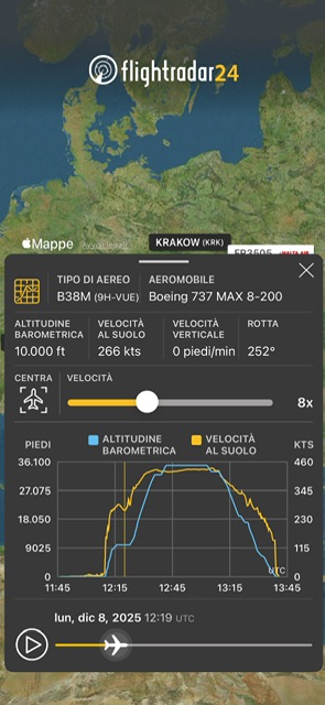 Un qualcosa che appare totalmente fortuito l’8 dicembre scorso ha causato lo spegnimento di un motore ad un B737-8200 9H-VUE di Malta Air e in tale livrea, era appena decollato da Cracovia con destinazione Bergamo come FR3505.