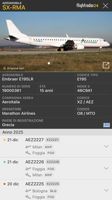 L’E195 è partito regolarmente per Milano Malpensa, al ritorno e’ atterrato a Bari e li sono iniziati i problemi, dovendo attendere chi doveva prendere l’aereo per Torino. Poi dopo aver effettuato il volo Bari – Torino e il seguente su Comiso, l’aereo e’ atterrato dopo la mezzanotte a Milano Malpensa.
