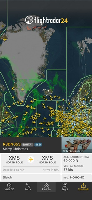 Se digitate il codice SANTA1 sul sito http://www.flightadar24.com potrete poi visualizzare dov’è al momento.
