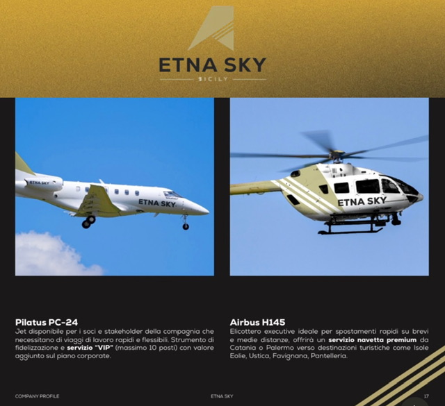 Invece ci sarà per una fascia di mercato molto simile all’executive jet un servizio di elicotteri premium con l’Airbus Helicopters H145 per i collegamenti rapidi da Catania e Palermo verso Isole Eolie, Ustica, Favignana e Pantelleria.