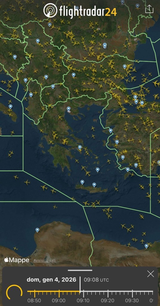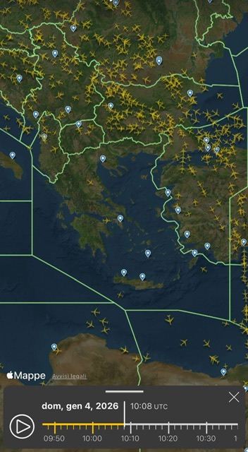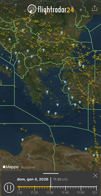 Un ora dopo lo spazio aereo greco é vuoto. I velivoli riportati sono a bassa quota. I flussi passano in Turchia.