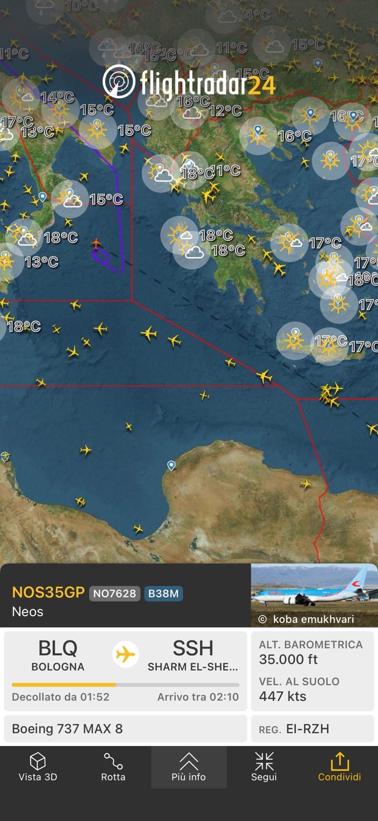 Chi invece era già con lo spazio aereo cipriota o egiziano ha continuato verso la destinazione. Per il ritorno ha evitato la Grecia a nord passando per Turchia ed i Balcani.