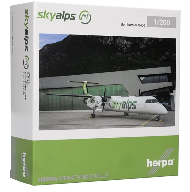 Per i collezionisti dei modelli in scala di aeromobili civili ora è in vendita il DHC-8-Q400 della compagnia aerea SkyAlps in 1:200. Il costruttore é molto noto, la Herpa.