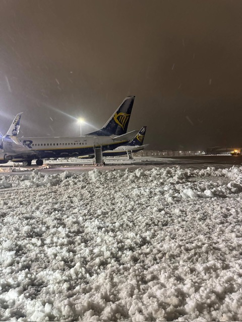 In serata di ieri sera è iniziata a cadere la neve e fino a tarda ora il traffico aereo in arrivo è stato dirottato in altri scali come Manchester, Liverpool, Londra Stansted, Londra Luton, Dublino, Londra Heathrow e East Midlands. Diversi voli sono stati cancellati.