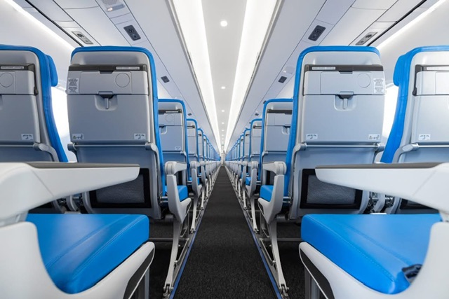 Il nuovo aereo arrivato il 29 novembre, ma che entra solo oggi in servizio attivo ha un interno cge puo’ ospitare fino a 136 posti. La sistemazione interna è chiaramente ad alta densità