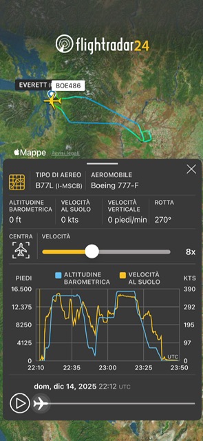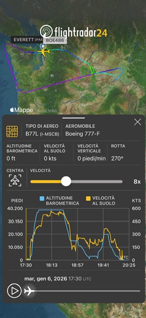 A mezzanotte ora italiana, le 15 di Seattle è previsto il decollo del Boeing 777-F I-MSCB MSC Air Cargo. L’arrivo a Milano Malpensa poco prima delle 11:00. Il volo LSI/CP902.