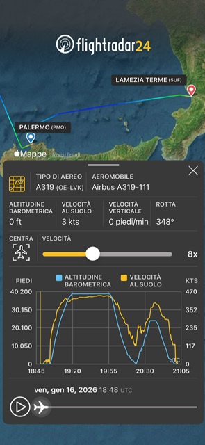 Il velivolo è poi rientrato a Palermo alle 23:27. E’ poi ripartito alle 00:27 e il suo arrivo a Malpensa e’ stato alle 0