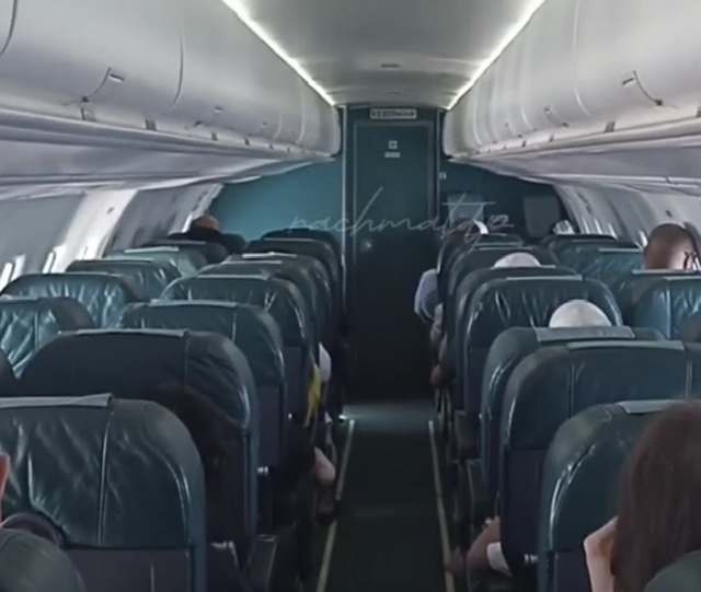 L’aereo aveva le marche PK-THT, ma fu consegnato nuovo alla compagnia aerea italiana Air Dolomiti il 23 marzo 2001 e ha volato in Italia fino al 12 luglio 2010 quando passò alla Indonesia Air. Così era l’interno in un video su social di rachmatdp. L’allestimento era ancora quello della compagnia aerea italiiana in pelle verde e sedute non slim, ma generosamente comide come usava a quei tempi un quarto di secolo fà.