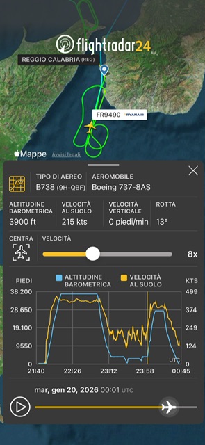 Nella tarda serata di ieri, ben oltre la mezzanotte, un volo Ryanair ci ha provato in tutti i modi di atterrare a Reggio Calabria, ma il maltempo in atto e ben noto, non ha lasciato alcuna possibilità.