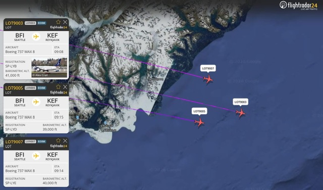 Tre aerei nuovi in consegna alla LOT Polish Airlines. Tre nuovi Boeing 737-8 LOT in arrivo da Boeing Firld a Seattle via Keflavik per Varsavia.