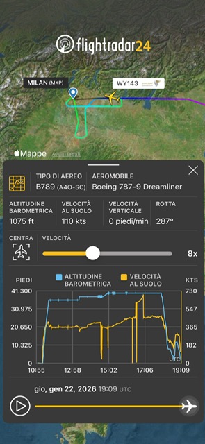 Nella serata del 22 gennaio 2026 il volo della comoagnia aerea Oman Air da Muscat per Milano Malpensa non e’ atterrato all’aeroporto di destinazione. Bensi’ è andato a posare le sue ruote a Bergamo, il suo aeroporto alternato.