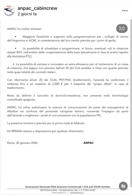 Secondo gli esiti di una riunione avvenuta tra la compagnia aerea Albastar e le organizzazioni sindacali di piloti e assistenti di volo tra poco la base attualmente presente a Bergamo verrà chiusa. Il trasferimento avverrà dal prossimo 31 marzo 2026.