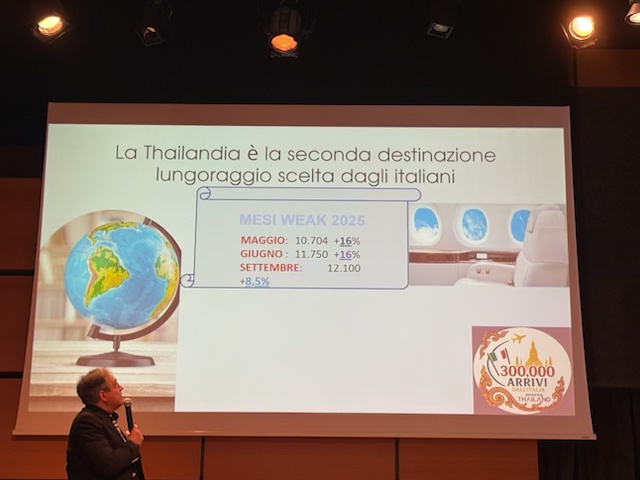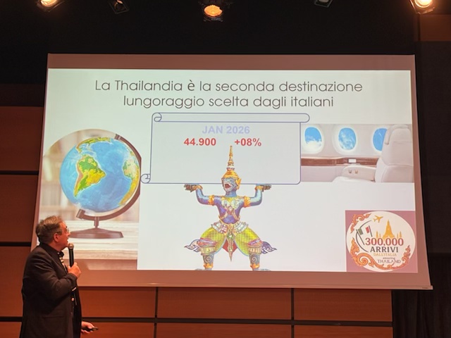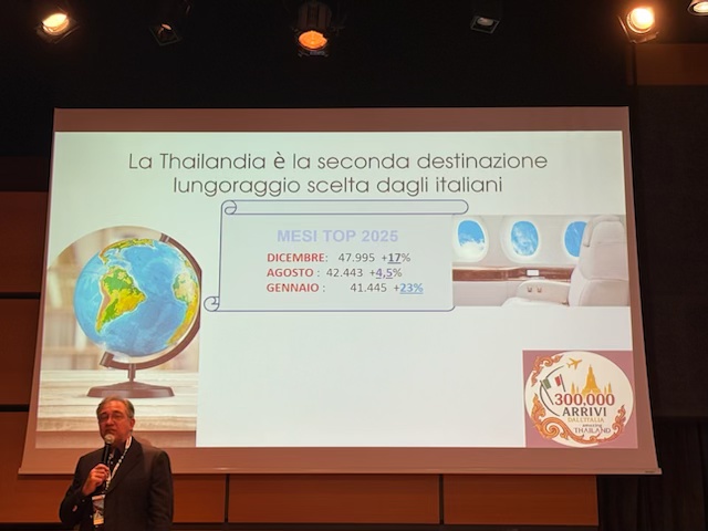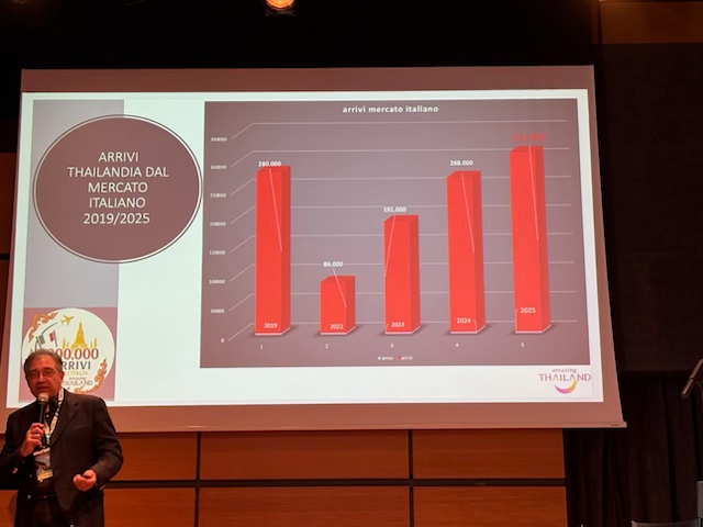 Non solo nel 2025 la Thailandia ha superato per la prima volta quota 300mila visitatori arrivati dall’Italia. Ma il risultato finale e’ stato addirittura quasi 312mila al 31 dicembre. Il nuovo record é stato annunciato con estrema soddisfazione da Sandro Botticelli – marketing manager dell’Ente del Turismo della Thailandia a Roma all’Auditorium del Palazzo delle Esposizioni in una giornata speciale, quella di Travel Hashtag / Special Trade Edition. Un evento organizzato da Nicola Romanelli.