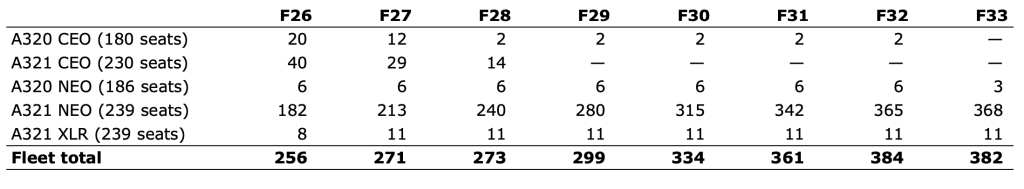 ▶ L’età media della flotta è attualmente di 4,5 anni, il che la rende la flotta più giovane tra le principali compagnie aeree europee, mentre il numero medio di posti per aeromobile è salito a 230 a dicembre 2025.