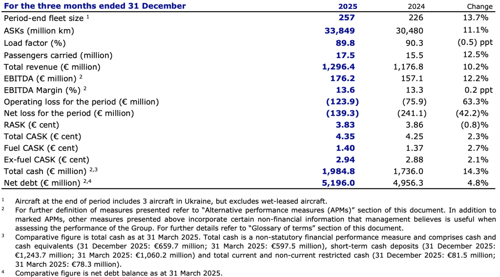 Wizz Air Holdings Plc (“Wizz Air”, “la Società” o “il Gruppo”), la compagnia aerea europea più efficiente in termini di emissioni1, pubblica oggi i risultati non certificati per il trimestre conclusosi il 31 dicembre 2025 (“terzo trimestre”, “T3” o “T3 F26”).