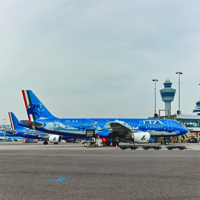 Dopo aver applicato alcuni sticker poco visibili sull’A320neo EI-HOI, poi e’ uscita, un po’ in ritardo questa livrea pensata con un certo ritardo per un evento importantissimo dal punto di vista turistico. L’illustratore Emiliano Ponzi ha creato questa colorazione molto bella , ma dagli accodtamenti difficili per la presenza della base di blu savoia della livrea ITA Airways.