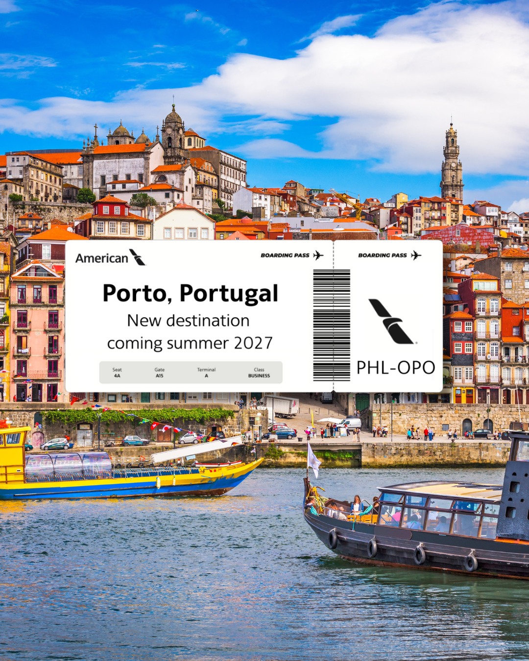 Molto stringato è il messaggio scrtto da vettore americano “Save the date: Porto, Portugal, coming 2027.”. La compagnia aerea americana piuttosto va a far parlare l’immagine, che chiaramente è più rapida, diretta ed eloquente nell’esplicitare il significato del messaggio.