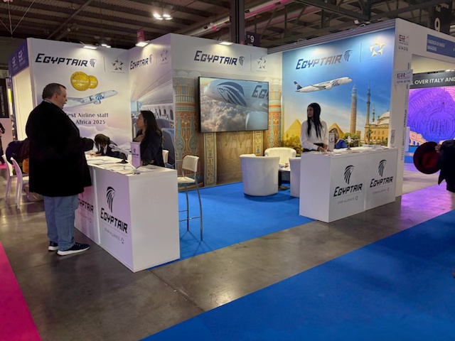 La compagnia aerea egiziana Egyptair con la novita’ dell’arrivo da qualche giorno del nuovissimo Airbus 350-900. Oltre al gia’ nuovo annunciato volo su Venezia. Alla Bit26 per incontrare il trade.