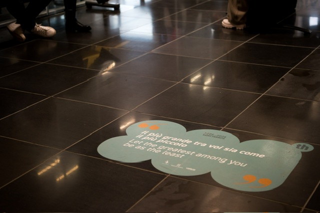 Tra le iniziative realizzate figurano l’utilizzo, per l’intero periodo delle celebrazioni, di un marchio speciale e celebrativo; le installazioni “Gate of Welcome – Le Porte Francescane” nell’area Arrivi; oltre 70 applicazioni grafiche diffuse tra pareti, controsoffitti e superfici calpestabili; la creazione di una landing page dedicata.