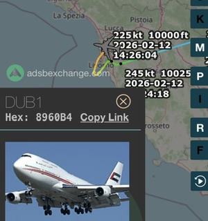 Il quadrigetto ha effettuato un volo Dubai – Pisa. Il suo arrivo e’ stato a meta’ pomeriggio. Il call sogn DUB1.