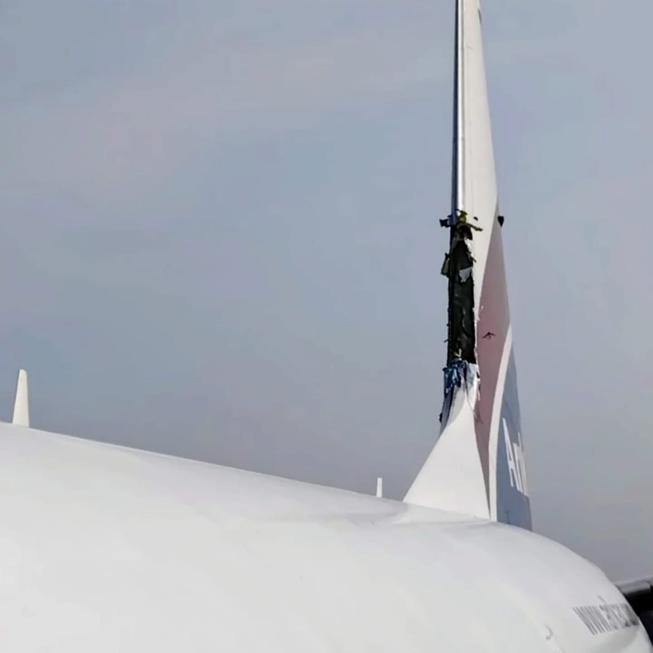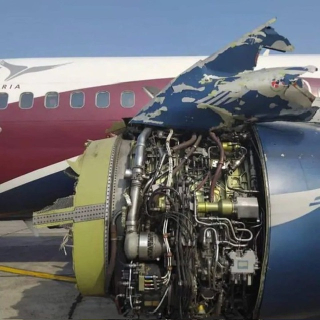 Il velivolo a seguito del bang ha ricevuto danni dai componenti che si sono dispersi. L’engine nacelle sinistra e’ praticamente scomparsa. Queste parti del velivolo hanno danneggiato il bordo d’attacco della deriva.