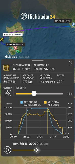 L’altra sera, domenica 15 febbraio per l’esattezza, un volo dell Ryanair decollato da Napoli e con destinazione Marrakech come FR5443, quando aveva già lasciato la costa della Sardegna nord occidentale, di fronte al Golfo d’Oristano ha invertito la rotat virando a sinistra per Cagliari.
