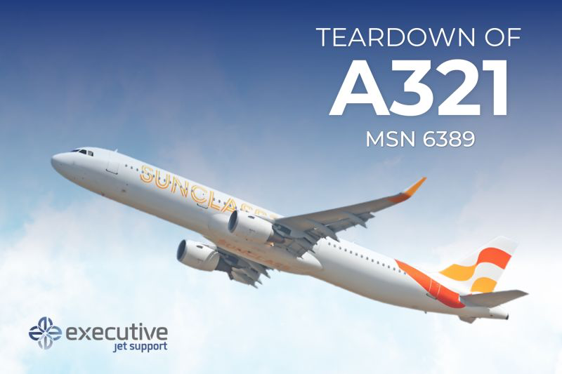 Executive Jet Support è lieta di annunciare l’inizio ufficiale dello smontaggio del nostro Airbus A321 (MSN 6389) recentemente acquisito da Sunclass Airlines, con lo smontaggio attualmente in corso a Tallinn, in Estonia.