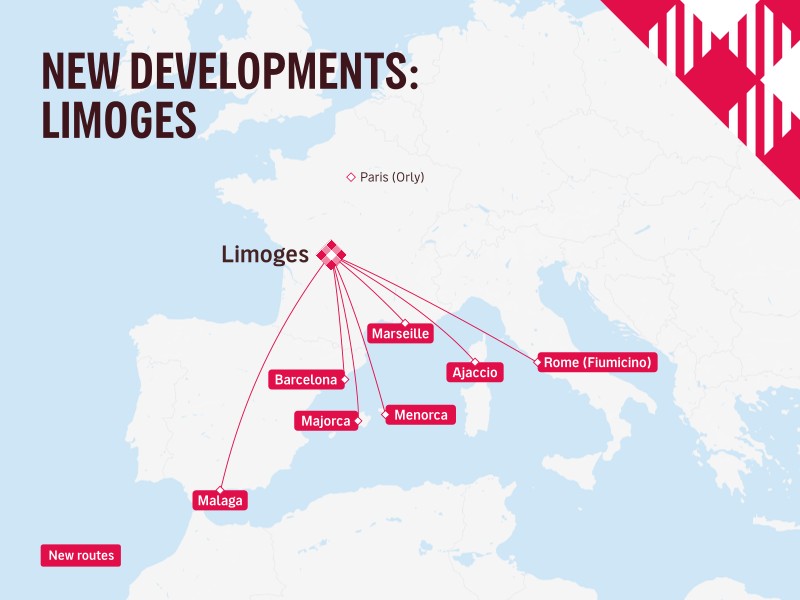 Dopo il lancio della base a febbraio, sta ampliando la rete da Limoges Aéroport con 7 nuove rotte in Francia, Spagna e Italia, operate da un Airbus A319 basato all’aeroporto.