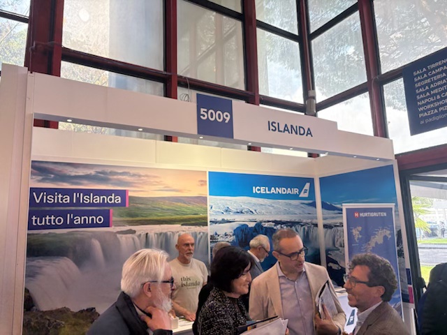 Molto affollato e ben posizionato perche’ posto in una zona di forte passaggio all’entrata e uscita di un padiglione della BMT di Napoli e’ lo stand dell’Islanda con Icelandair rappresentata da Discover the World di Gianbattista Sassera, che promuove le attivita’ del vettore islandese sul mercato del centro e sud italia.
