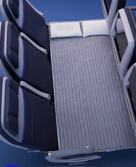 United Airlines, dopo tanti anni sposa l’idea che introdusse anni fa’ Air New Zealand con SkyCouch. Anche in economica sul Nord Atlantico e non solo, si potrà dormire. Si chiama United Relax Row! Ma non é tutto!