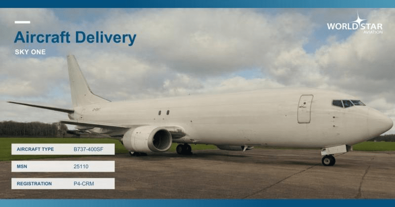 World Star Aviation è lieta di annunciare la consegna di un Boeing 737-400SF a SKY ONE (FZE), il terzo aeromobile in leasing per la compagnia aerea cargo con sede negli Emirati Arabi Uniti, a ulteriore conferma del solido rapporto di WSA con un partner in crescita nel settore del trasporto merci regionale e internazionale.