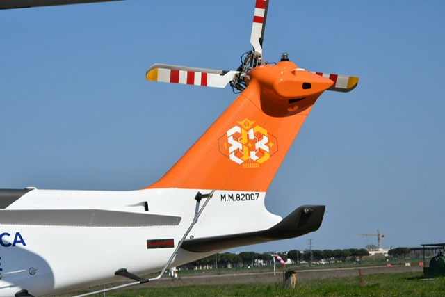Come tradizione per questi eventi, non è mancato lo “special color”, ovvero un elicottero celebrativo appositamente dipinto e tenuto coperto fino all’ultimo per non svelare la sorpresa. I temi della colorazione sintezzano la storia e il compito del reparto: il pellicano che è l’emblema del Grupp. oltre alle bande gialle, arancioni e sfondo bianco che sono state delle macchine precedenti con la coda ornata da un 83 stilizzato e il classico stemma del 15° Stormo SAR, unità di appartenenza. E’ poi seguita una dimostrazione in volo delle capacità della macchina e recupero con verricello e un passaggio finale con la bandiera del Gruppo appesa all’HH 139 “special”.
