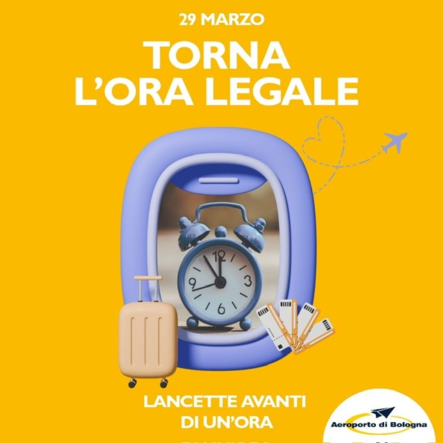 L’aeroporto di Bologna con questa immagine ci ricorda che domani alle 2 si dovranno mettere in avanti di un’ora le la ncette degli orologi e cosi tornerrà l’ora legale.