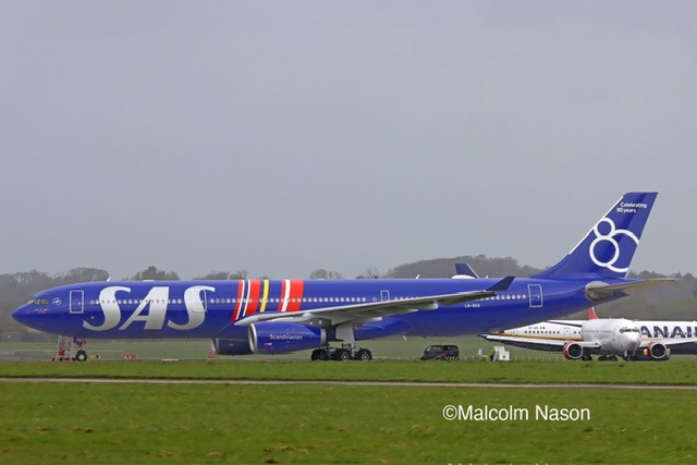 Con la foto dell’amico Malcolm Nason, oggi a Shannon e’ apparso un Airbus 330-300 SAS – Scandinavian Airlines nella livrea speciale predisposta per gli 80 anni del vettore. Le marche dell’aereo sono SE-RKR.