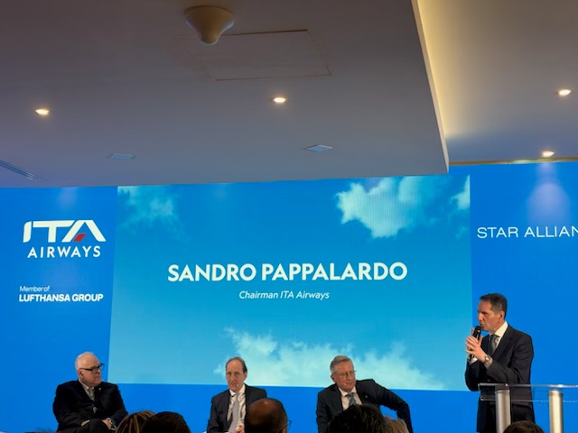 La dialettica utilizzata da Pappalardo nel suo discorso all’audience ha voluto mostrare con un ruolo di responsibilita’, quello tipico di “un padre di famiglia”. Non ha lasciato nulla al caso, ogni dettaglio e’ stato rappresentato, anche quale sia il ruolo di ITA Airways e cioè senza dubbio l’italianità, il saper modo di fare e come trasmettere un esperienza che nasce dai valori aggiunti di questo Paese, che sono ad esempio la classe, la raffinatezza, la cultura, il saper vivere, come accogliere, trasmettere tutte le bellezze che può offrire l’Italia e lo fa per il tramite di questa compagnia aerea, con i suoi strabilianti colori, i fantastici interni di classe ed un personale che trasmette com orgoglio lo stile italiano.