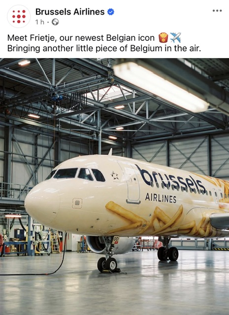 Meet Frietje e’ il nuovo Airbus 320neo di Brussels Airlines, che mostra questa nuova livrea speciale. Oppure e’ un pesce d’Aprile. Visto che oggi e’ l’1 aprile. Noto per gli scherzi. Le patate fritte volanti.