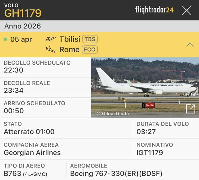 Non vogliamo confondere questo nuovo volo cargo Georgian Airlines con il già esistente volo passeggeri della Georgian Airways con B737. Il nuovo operativo da Tbilisi e’ effettuato con B767-330ER BDSF .