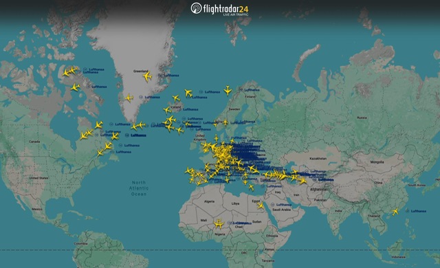 Questo e’ lo scenario che si vedeva ieri quando il vettore tedesco era in normali operazioni.