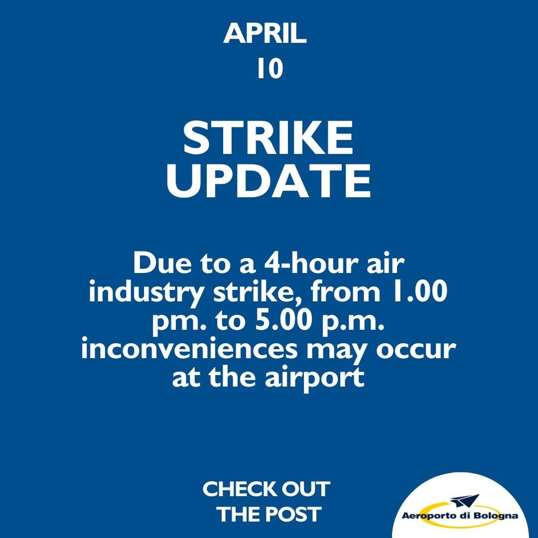 Questa e’ la locandina che ha pubblicato l’aeroporto di Bologna, ma c’e’ sciopero per diverse sigle di operatori che vanno dal controlo del traffico aereo all’handling.
