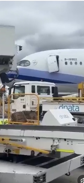 L’aereo retrae quando e’ ancora agganciato alla jetway e la porta anteriore sinistra di questo Airbus 350-900 China Airlines viene in buona parte sradicata e l’aereo diventa automaticamente AOG con un danno che lo terrà fermo per qualche tempo.