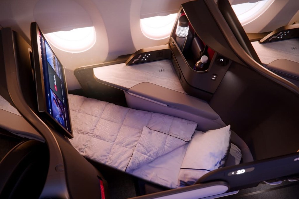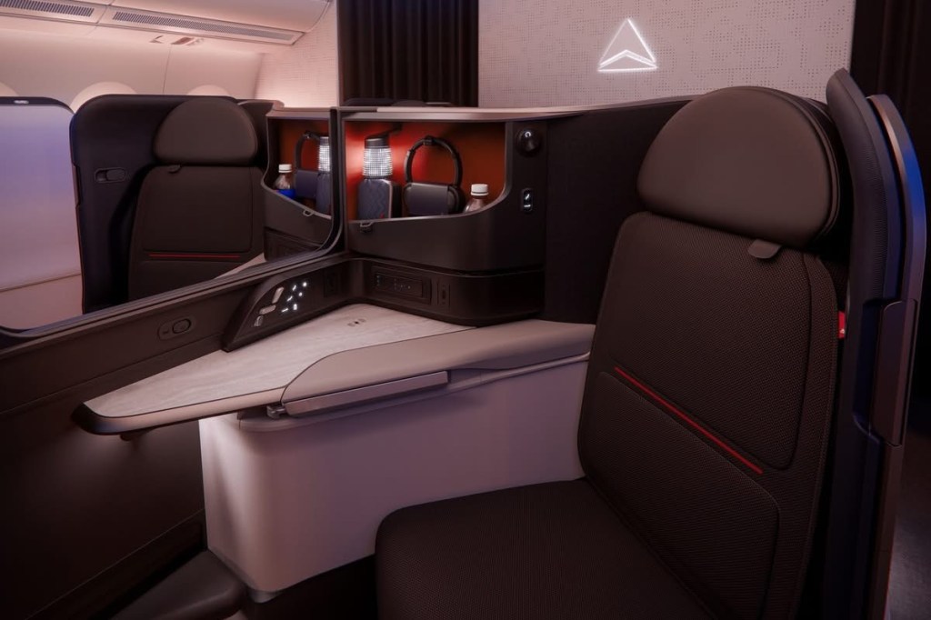 Molti dei nuovi elementi di design – tra cui il rivestimento imbottito, la ricarica wireless, i comandi touch del sedile, la lampada, l’illuminazione d’ambiente in suite e la porta USB-C, – saranno integrati nelle nuove suite installate sugli A330-200/300 con porte scorrevoli, creando continuità nell’esperienza Delta One su tutta la flotta.