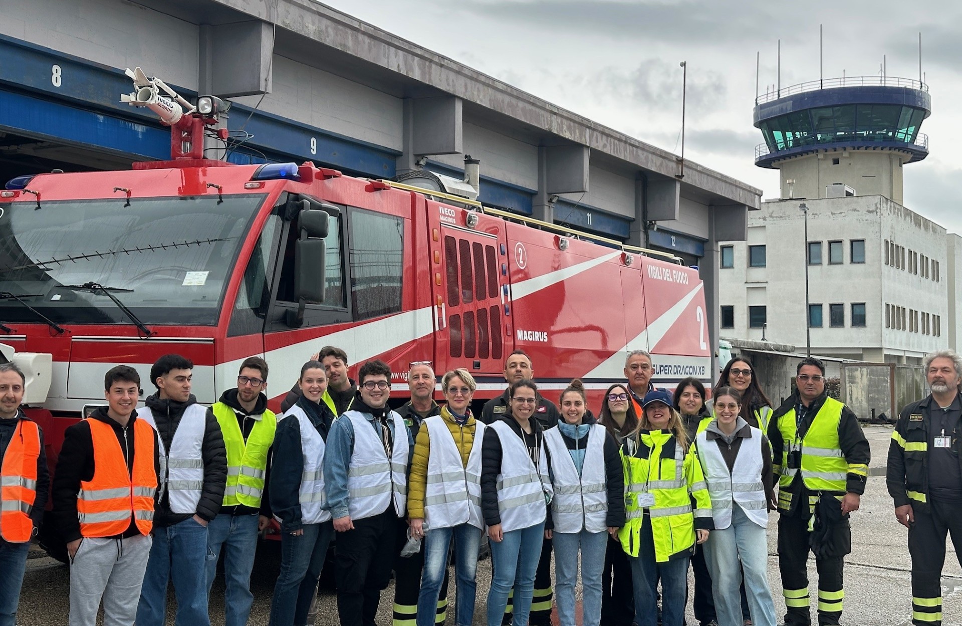 C’è un momento, durante una visita formativa, in cui la teoria smette di essere un insieme di concetti e diventa vita reale. È accaduto agli studenti del Corso di Laurea Magistrale in Rischio Ambientale e Protezione Civile dell’Università Politecnica delle Marche, protagonisti di una giornata intensa e profondamente immersiva presso l’Aeroporto di Ancona. Una giornata in cui il sistema aeroportuale di risposta ad una simulazione di emergenza si è mostrata senza filtri: viva, complessa, coordinata e umana. Gli studenti hanno potuto osservare da vicino, durante una esercitazione, ciò che normalmente resta dietro le quinte: la catena di allerta, i mezzi antincendio, le procedure di emergenza, la gestione delle comunicazioni, il coordinamento delle attività.