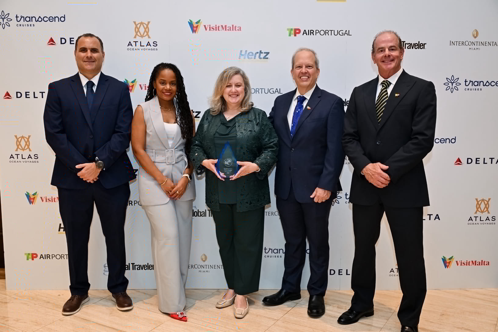 La cerimonia della 14ª edizione dei Global Traveler si è svolta il 20 aprile a Miami, premiando i principali marchi del settore dei viaggi in base alle preferenze espresse dai lettori.Manuel Simões, Key Account Manager presso TAP Air Portugal; Audrey Yacou, Marketing Manager di TAP; Fernanda Ottavio, Market Manager di TAP per il Nord America; Thomas Miessler, Station Manager a Miami; e Roberto Piccoli, Regional Manager per il Nord America, Airport Services, TAP Air Portugal.