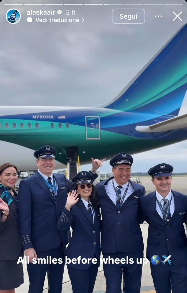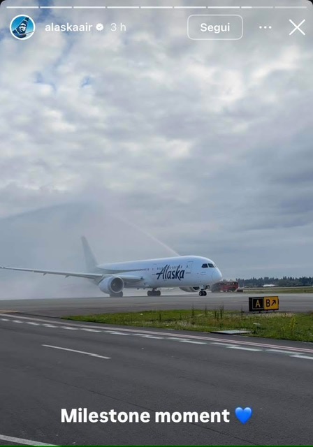 I festeggiamenti a Seattle per il primo volo Alaska Airlines per Roma Fiumicino si sono conclusi e il B787-9 N780HA e’ decollato con un po’ di ritardo. Giusto una mezzoretta che uo’ tranquillamente recuperare.