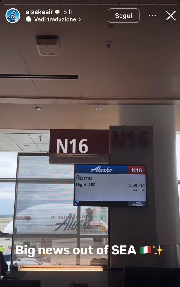 Alle 12:57, con un leggero anticipo arriverà a Roma Fiumicino il primo volo AS180 da Seattle. E’ il primo dei voli giornalieri stagionali che da oggi e fino al 20 ottobre collegheranno per la prima volta i due scali. La prima volta anche per Alaska Airlines nell’attraversare l’Oceano Atlantico.